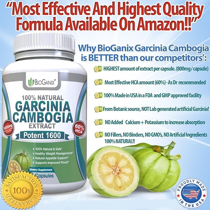 Natural Safe b Garcinia Cambogia b Extract HCA is a fat loss aid that may suppress appetite, you will find that b BioGanix b offers the best bang for your buck. You can order b BioGanix b Pure b Garcinia Cambogia b Premium 1600 mg with a money back guarantee, maker of top quality supplements is b BioGanix b 100 Pure b Garcinia Cambogia b Extract.